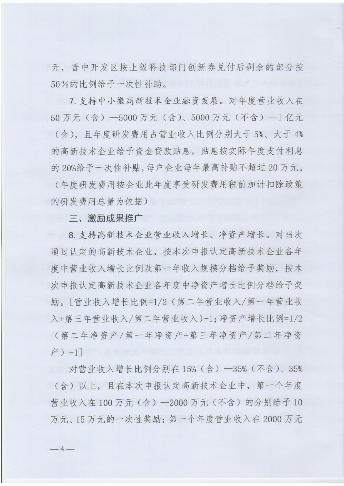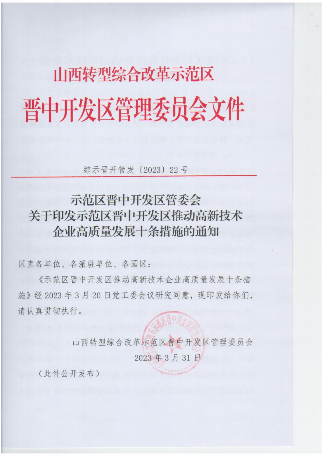 山西綜改示范區(qū)晉中開(kāi)發(fā)區(qū)管委會(huì)關(guān)于印發(fā)示范區(qū)晉中開(kāi)發(fā)區(qū)推動(dòng)高新技術(shù)企業(yè)高質(zhì)量發(fā)展十條措施的通知